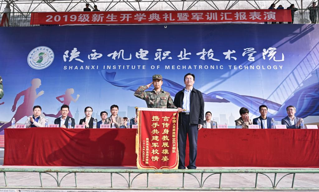 在新中国成立70周年之际,2019年9月30日上午,陕西机电职业技术学院2019级新生军训汇报表演在我院运动场隆重举行,学院党委副书记、院长向纪明,党委副书记邓新治,党委副书记、纪委书记齐晓军,副院长张新堂、徐圣月、张琴和各部门负责人出席活动,活动由党委副书记邓新治主持,全体2019级新生参加此次活动。