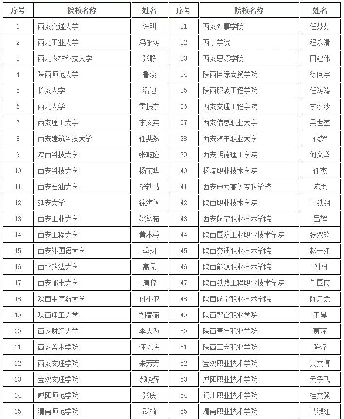 2021年陕西高校就业工作优秀工作者拟表彰名单