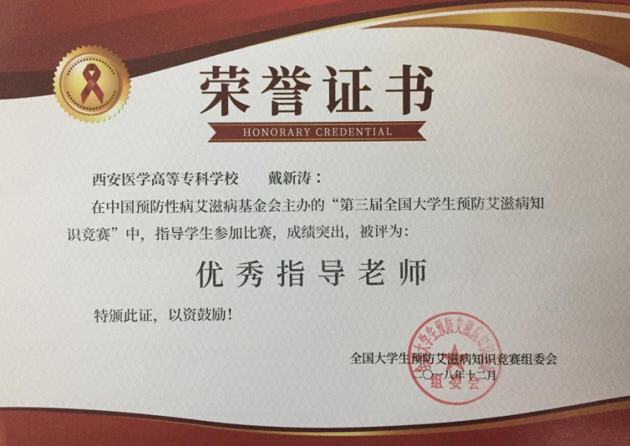 杨玉妍 徐霜 亢海鱼三名同学荣获第三届全国大学生预防艾滋病知识竞赛一等奖 |